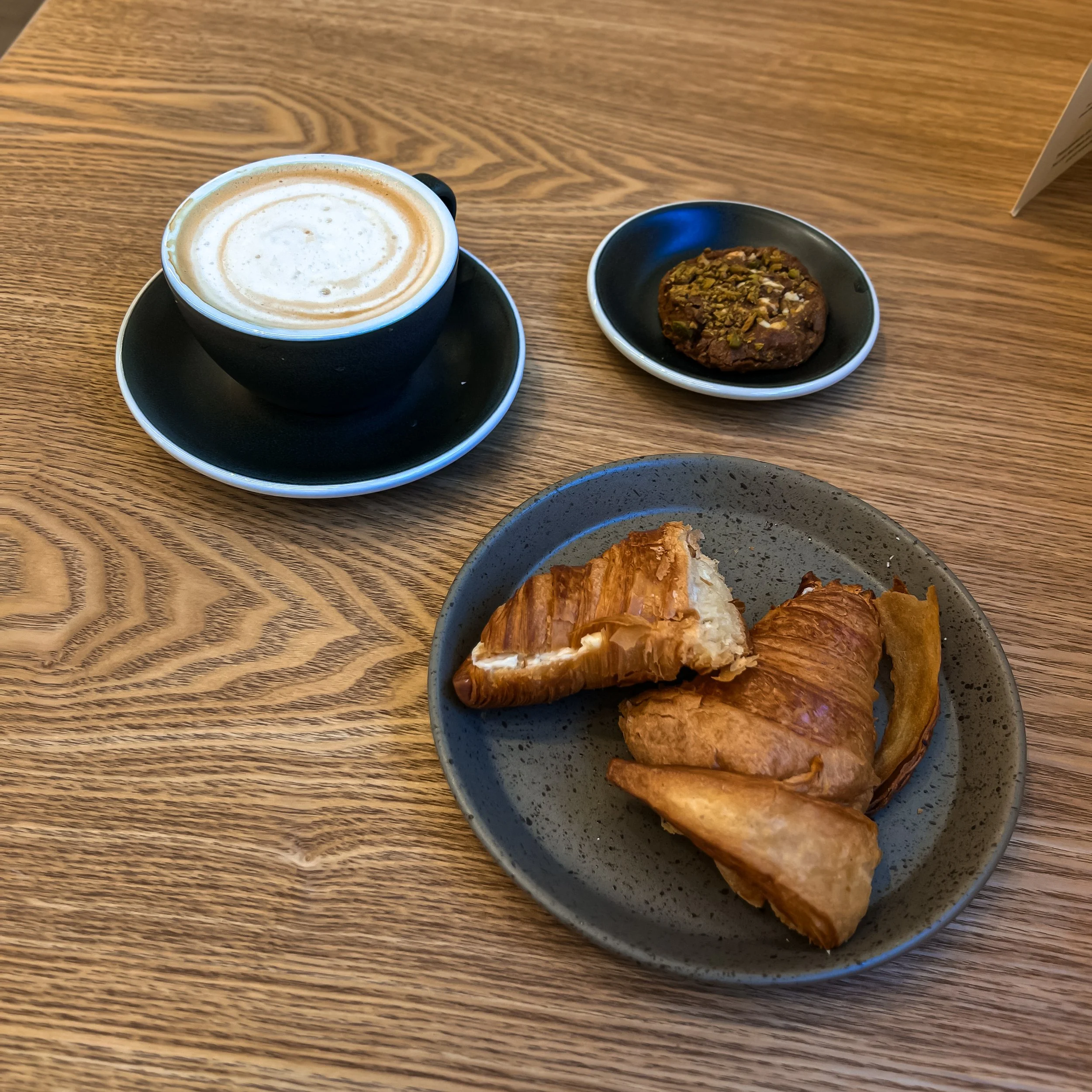 Na volta, parei num café que sempre passo e nunca entro. Pedi um croissant, cappuccino e o melhor cookie de pistache com caramelo já inventado. Me perguntei: se não hoje, quando? E saboreei cada pedaço, só gratidão (microluxo 3).